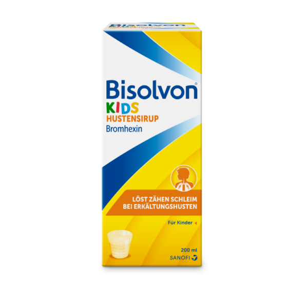 Bisolvon Kids Hustensirup ist ein Arzneimittel zur Behandlung der übermässigen Bildung von Schleim bei Erkältungshusten. Das Arzneimittel kann auf ärztliche Verschreibung auch bei chronischen Atemwegserkrankungen mit Bildung von zähem Sekret und erschwertem Sekrettransport eingesetzt werden.